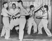 We do not engage in free-fighting (randori or jiyu-kumite). We do, however, practice applications with a training partner in a controlled way, through one, two, and three step exercises and drills. Many traditional masters structured their classes and training regimens so that students could help each other. The general training orientation emphasizes physical and mental conditioning, strong basics and proper attitude.